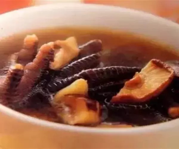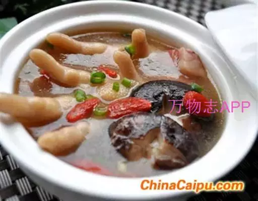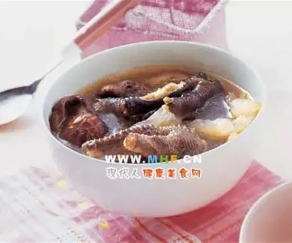 鸡爪8个,香菇10克,冬笋15克,火腿15克,熟鸡油10克,精盐2克,味精1克,绍酒10克,葱姜汁5克,鸡汤1000克。