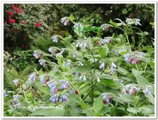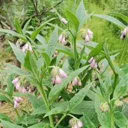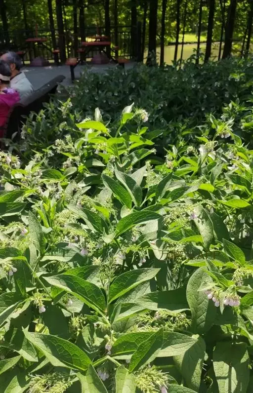 聚合草(Symphytum officinale L),别名爱国草、肥羊草、友益草、友谊草、紫根草、康复力、外来聚合草、西门肺草、紫草根。丛生型多年生草本,高30-90厘米,全株被向下稍弧曲的硬毛和短伏毛。生于山林地带,为典型的中生植物。原产苏联欧洲部分和高加索,中国于1973年朝鲜将其作为珍贵礼物送给中国,从此引种栽培。聚合草适应性广,产量高,利用期长,适口性好,是优质高产的畜禽饲料作物,其也有有较高的营养价值,可作药用,也有一定的观赏价值,