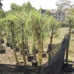 4.种植方法:常见的有竹苗造林、插枝造林和带莞埋杆等方法。 竹苗造林:此法成活率高,成本低.运输方便,成林较快。具体做法是将一年生竹苗在挖苗前先切去大部分竹竿.只留基部3~4个节,把竹苗成丛挖起,2~3竿为一丛,分成若千小丛.浆根包扎好运往造林地。浆根前如能先用浓度为50Ppm的3号ABT生根粉药水浸泡数分钟则效果更佳。将竹苗放人预先挖好的坎中覆土踩紧.再培一层松土,盖草保湿。不宜种太深,以免影响出笋.插枝造林:丛生笋用竹种大多数主枝发达,枝莞像竹莞,都具有笋芽和突起的根点,可直接当作母竹来育苗和造林.做法与插枝育苗法相同,只是造林时每个定植坎要埋枝2条。成活率可高达90%~95写,当年竹苗平均高达2米以上。在种苗缺,季节紧和管理条件好的地方都可采用. 带莞埋竿法:竹种确定后,选一年生竹杆粗壮、枝节完整、个体较小的竹子作母竹。挖取时先离开竹杆30厘米左右扒开土层,找到母竹的柄与老竹连接点,用利刀砍断连莞挖出。将母竹杆砍去竹梢,切口向上,仅留1米长左右的秆,浆根包扎后运往造林地种植。种时把母竹平放于预先挖好的坎中,杆柄(烟袋斗头)朝下,杆基二侧的芽眼都倾向水平位置,分层盖土10厘米左右,踩紧再盖一层松土和一层草.此法栽种易成活,竹子成林快成材早,出笋快。但挖母竹费工,母竹来源少,成本高。 不论哪一种方法,都要求“深挖浅种,内紧外松”。 竹林的抚育管理 除草与松土:每年6~9月间除草,幼林一年两次.成林一年一次。为有利竹笋生长,松土宜在11月至翌春2月进行较好,深度15~20厘米,按“近莞丛浅,远莞丛深”原则掌握,每隔2~3年深翻土一次,把杂草灌丛翻人土中。也可以在新种竹林地内间种农作物,品种以豆类、木薯、西瓜、玉米和绿肥等为好,间种年限为1~2年,作物不宜太近竹丛。 施肥与培土:竹笋每年产量高,地力消耗大,必须补充养分.一般年产笋500~1 000公斤的笋用林,每年每亩至少要施尿素12.5公斤、磷肥5~7.5公斤、氯化钾4公斤。速效化肥宜在出笋初期施放.沿竹丛距离50~60厘米处开一环状沟,深10~15厘米,肥料施人沟中盖好土。有机肥每亩施2 500公斤左右,结合冬季松土时沟施。 未出土的竹笋肉嫩清脆味好.出土见光后笋肉易老化味差。因此在出笋初期(5~6月)宜对竹丛莞部培土,厚度20~30厘米,至翌年3月底4月初将培土扒开,使竹莞露出以提高地温,促进笋芽早萌动,提高竹笋质量。 采笋与留竹:丛生竹林的笋期较长.一般在5~6月为出笋初期,7~8月为出笋盛期,9~10月为末期,初期和盛期出笋量占总出笋量的80%~90%.此时笋体粗壮,成竹质量好,竹笋出土时都应及时采收,否则竹笋出土后见光易老化,质量降低.同时也要注意适当留笋养竹,否则竹林易衰败。一般每丛竹每年在8~9月留选4~5株母竹(新竹)。冬季要及时砍伐四年生以上的老竹3~4株,以保持竹丛相对年轻,生长旺盛。及时挖老竹莞是丛生竹复壮更新的重要措施,不可忽视。