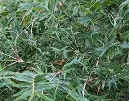 凤尾竹 Raeusch. ex Schult. ’Fernleaf’ R. A. Young)是禾本科,簕竹属孝顺竹的变种。植株较高大,杆高可达6米,竿中空,小枝稍下弯,下部挺直,绿色;竿壁稍薄;节处稍隆起,无毛;叶鞘无毛,纵肋稍隆起,背部具脊;叶耳肾形,边缘具波曲状细长繸毛;叶舌圆拱形,叶片线形,上表面无毛,下表面粉绿而密被短柔毛,小穗含小花,中间小花为两性;外稃两侧稍不对称,长圆状披针形,先端急尖;内稃线形,脊上被短纤毛,花药紫色,子房卵球形,羽毛状。成熟颖果未见。原产中国,华东、华南、西南以至台湾、香港均有栽培。凤尾竹喜温暖、湿润和阳光充足的环境,耐寒。宜土层深厚、肥沃、疏松的微酸性壤土。该种观赏价值较高,宜作庭院丛栽,也可作盆景植物。全草或根入药,味淡、微苦,性寒,有清热利湿、凉血止血、消肿解毒功效,可治痢疾、泄泻等多种病症。凤尾