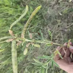 荚果通常长1-1.2厘米,宽3-4毫米,密被银灰色绒毛,腹缝线直或浅波状,背缝线波状,通常有荚节3-4;种子椭圆形,长2.5毫米,宽1.8-2毫米。