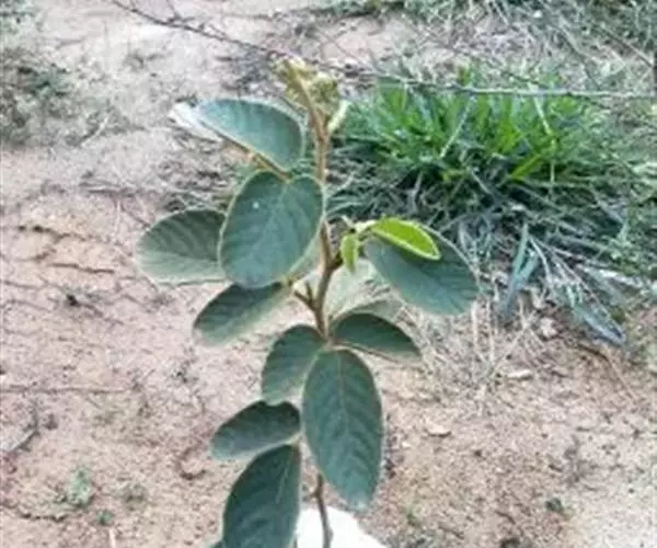 茎、枝和叶柄均密被黄色绒毛。托叶宽三角形,长3-5毫米,基部宽2-3毫米,外面被绒毛;叶柄长约5毫米;小叶革质,顶生小叶卵形、椭圆形至倒卵形,长7-10厘米,宽3-5厘米,侧生小叶斜卵形,长比顶生小叶约短1倍,两端钝,两面均密被绒毛,下面尤密,侧脉每边9-10条,直达叶缘,边缘呈浅波状;小托叶针状,长约2毫米;小叶柄长1-2毫米,密被黄色绒毛。