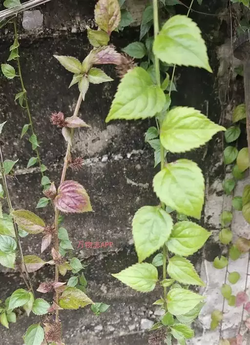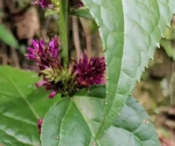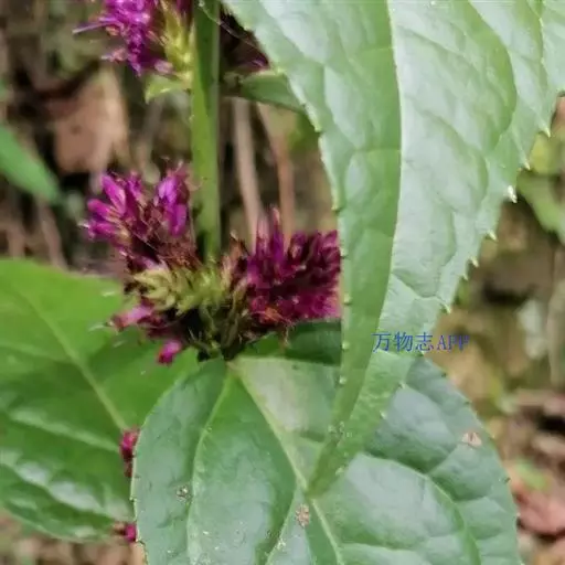 柔毛,边缘有尖锯齿。夏季开花;德状花穗,无柄,近球形,长约1.2厘米;花紫红色。但茎无毛或疏生短毛,花序圆筒状,长1.5~3.5厘米。民间常混用。