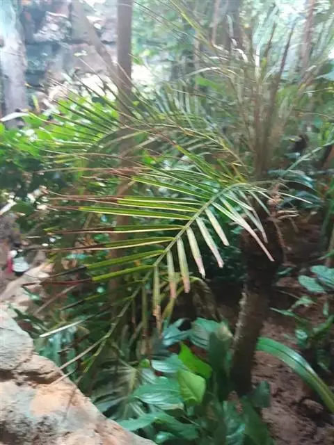 矮棕竹:丛生灌木,高1米或更高些,茎圆柱形,有节,上部被紧密的网状纤维的叶鞘,纤维毛发状,淡褐色。…