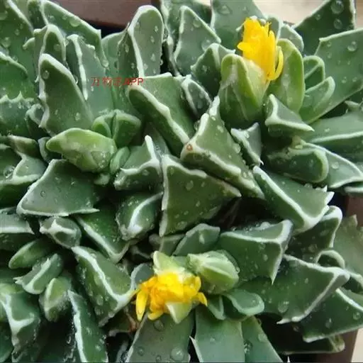 植株密集丛生,非常肉质,叶十字交互对生,基部联合,先端三角形 四海波 ,叶缘和叶背龙骨突表皮硬膜化,大部分叶面有肉齿,叶缘有肉质粗纤毛,花大无柄,花色以黄色为多,夏季休眠。