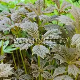 茎无叶,或仅具1叶,被腺毛。基生叶1-4枚,叶片心形至肾状心形,长0.8-3.7厘米,宽0.8-3.9厘米,基部心形,不明显5-7浅裂,边缘具齿牙,两面被硬腺毛,叶柄长1-8.3厘米,被硬腺毛;茎生叶与基生叶同型,长约1.6厘米,宽约1.4厘米,被硬腺毛,具短柄。