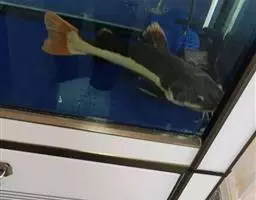 红尾护头鲿,商品名:军舰鸭嘴、红尾鸭嘴鲶鱼、红尾鲶鱼、狗崽鲸、狗仔鲸、红尾猫.分布于亚马逊河与奥里诺科河流域,是一种常见的观赏性鱼类。