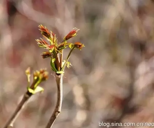 摘香椿 香椿品种很多,根据香椿初出芽苞和子叶的颜色不同,基本上可分为紫香椿和绿香椿两大类。
