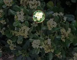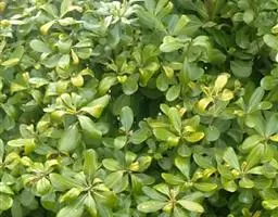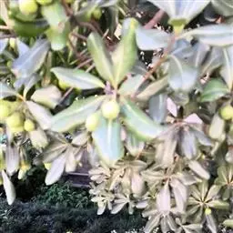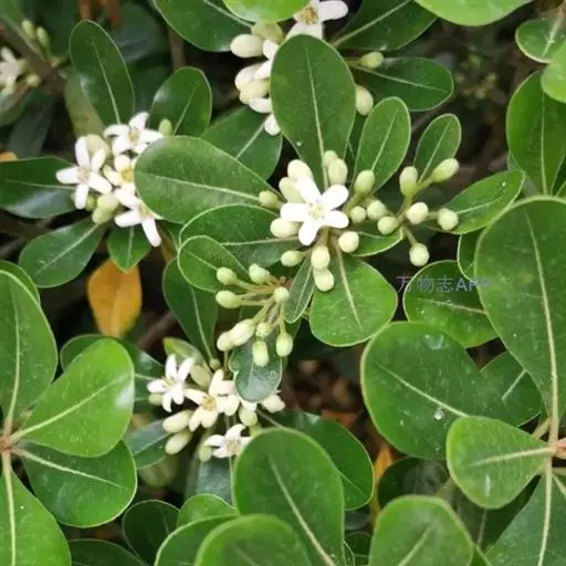 海桐 海桐枝叶繁茂,树冠球形,下枝覆地;叶色浓绿而又光泽,经冬不凋,初夏花朵清丽芳香,入秋果实开裂露出红色种子,也颇为美观。