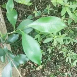 常绿灌木或小乔木,高可达6米,嫩枝被褐色柔毛,有皮孔。叶聚生于枝顶,二年生,革质,嫩时上下两面有柔毛,以后变秃净,倒卵形或倒卵状披针形,长4-9厘米,宽1.5-4厘米,上面深绿色,发亮、干后暗晦无光,先端圆形或钝,常微凹入或为微心形,基部窄楔形,侧脉6-8对,在靠近边缘处相结合,有时因侧脉间的支脉较明显而呈多脉状,网脉稍明显,网眼细小,全缘,干后反卷,叶柄长达2厘米。