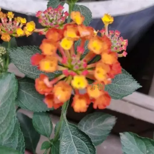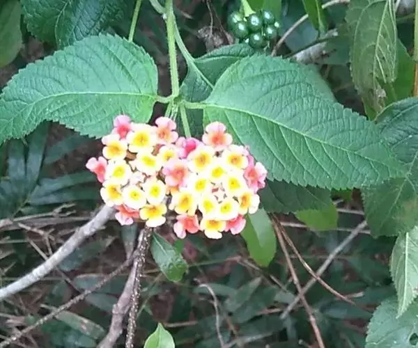 马缨丹(学名:Lantana camara L.)是马鞭草科马缨丹属植物。直立或蔓性的灌木,高1-2米,有时藤状,长达4米;茎枝均呈四方形。单叶对生,揉烂后有强烈的气味,叶片卵形至卵状长圆形。花序直径1.5-2.5厘米;花序梗粗壮,长于叶柄;苞片披针形,长为花萼的1-3倍,外部有粗毛。果圆球形,直径约4毫米,成熟时紫黑色。全年开花。
