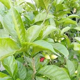 狗牙花 R. Br. ex Roem. & Schult.)是夹竹桃科山辣椒属灌木植物;枝灰绿色;叶椭圆形或椭圆状长圆形,叶面深绿色,背面淡绿色,叶面扁平;花聚伞花序腋生,通常双生,萼片长圆形,边缘有缘毛,花冠白色;果长圆形;花期六至十一月;果期秋季。狗牙花因其花冠裂片边缘有皱纹,状如狗牙,故名。狗牙花原产于印度及中国云南,在广西、广东、台湾及亚洲热带和亚热带等地区广泛栽培。狗牙花喜温暖湿润,不耐寒,宜半阴,对土壤要求不严,喜肥沃、排水良好的酸性土壤,常生长于山地灌木丛中。狗牙花的主要繁殖方式为扦插。狗牙花味酸、凉,有清热降压、解毒消肿的功效,可用于治疗咽喉肿痛,跌打损伤。狗牙花枝叶茂密,株型紧凑,花朵净白素丽,典雅朴质,盛花时十分美观,且花期长,具有一定观赏价值。狗牙花还有较高的经济价值,园林中应用极为普遍,可丛植于林缘、路