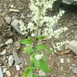 大籽蒿 大籽蒿种子小,千粒重0.15克,在25-30℃温度下,24小时即可发芽,在一定温度范围内,发芽率随温度升高而增高,发芽速度加快。0-5℃,发芽率为10%,需24天,10-15℃,达83%,需12天,20-25℃,达84%,只需8天。当温度上升至25-30℃时,发芽率则降至49%,35℃,发芽率只27%。在海拔1650米的中国天山北坡种植,4月18日播种,5月14日出苗,6月25日进入分枝期,从播种到出苗需26天,出苗到分枝需42天。分枝期一般有9片真叶,平均每出1片真叶需4-6天。当年一直处于叶簇阶段。一边长出新叶,一边基部老叶片枯死。