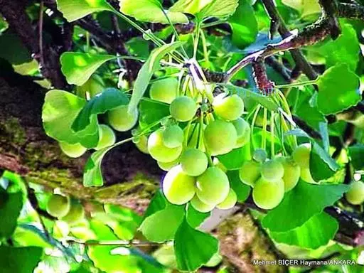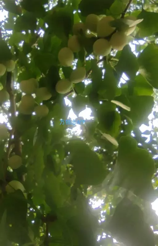 4月开花,10月成熟,种子具长梗,下垂,常为椭圆形、长倒卵形、卵圆形或近圆球形,长2.5-3.5厘米,径为2厘米,中种皮骨质,白色,常具2(稀3)纵棱;内种皮膜质。外种皮肉质,熟时黄色或橙黄色,外被白粉,有臭叶;中处皮白色,骨质,具2-3条纵脊;内种皮膜质,淡红褐色;胚乳肉质,味甘略苦;子叶2枚,稀3枚,发芽时不出土,初生叶2-5片,宽条形,长约5毫米,宽约2毫米,先端微凹,第4或第5片起之后生叶扇形,先端具一深裂及不规则的波状缺刻,叶柄长0.9-2.5厘米;有主根。