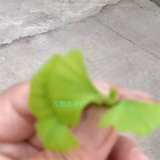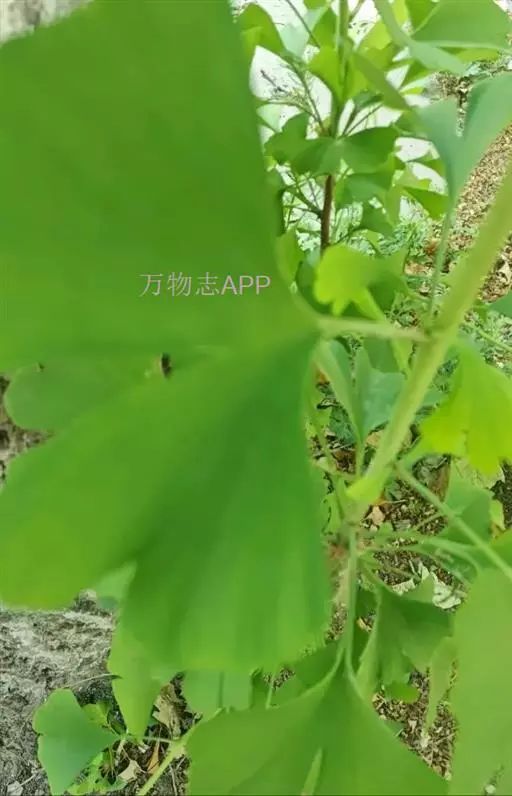 叶互生,在长枝上辐射状散生,在短枝上3~5枚成簇生状,有细长的叶柄,扇形,两面淡绿色,无毛,有多数叉状并列细脉,在宽阔的顶缘多少具缺刻或2裂,宽5-8(-15)厘米,具多数叉状并歹帕细脉。在长枝上散生,在短枝上簇生。它的叶脉形式为“二歧状分叉叶脉”。在长枝上常2裂,基部宽楔形,柄长3-10(多为5~8)厘米,幼树及萌生枝上的叶常较而深裂(叶片长达13厘米,宽15厘米),有时裂片再分裂(这与较原始的化石种类之叶相似),叶在一年生长枝上螺旋状散生,在短枝上3-8叶呈簇生状,秋季落叶前变为黄色。