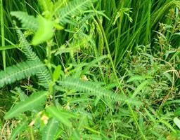 袋苗造林:营养土以有机肥料和农田肥土按1:1比例,混合均匀,装入底部有孔的塑料袋内,3.至4月每袋播种4至6粒,最后留苗1-2株,当年了月即可造林。成活率可达99%。植株生长快,到12月,平均株高1.8米,地径2厘米。第二年即可放养紫胶虫。大叶千斤拔造林株行距为1.5×2米或2×2米。