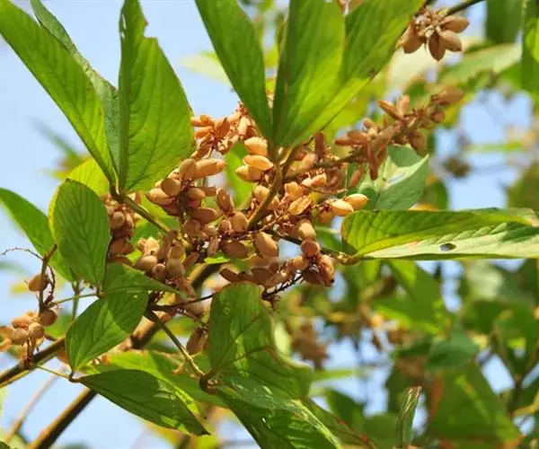 荚果椭圆形,长1-1.6厘米,宽7-9毫米,褐色,略被短柔毛,先端具小尖喙;种子1-2颗,球形光亮黑色。花期6-9月,果期10-12。