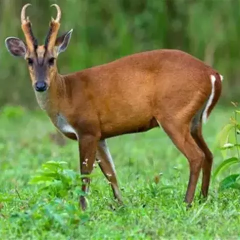 赤麂是鲸偶蹄目鹿科麂属哺乳动物,又名红麂、印度麂、角麂、吠鹿。脸部较狭长,额部V字形黑纹特别明显,…
