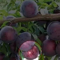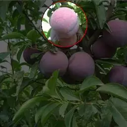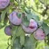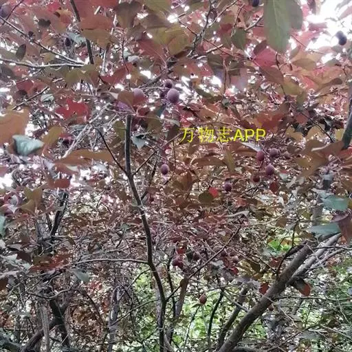 核果近球形或椭圆形,长宽几相等,直径1-3厘米,黄色、红色或黑色,微被蜡粉,具有浅侧沟,粘核;核椭圆形或卵球 形,先端急尖,浅褐带白色,表面平滑或粗糙或有时呈蜂窝状,背缝具沟,腹缝有时扩大具2侧沟。花期4月,果期8月。