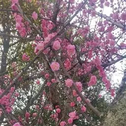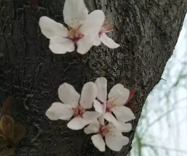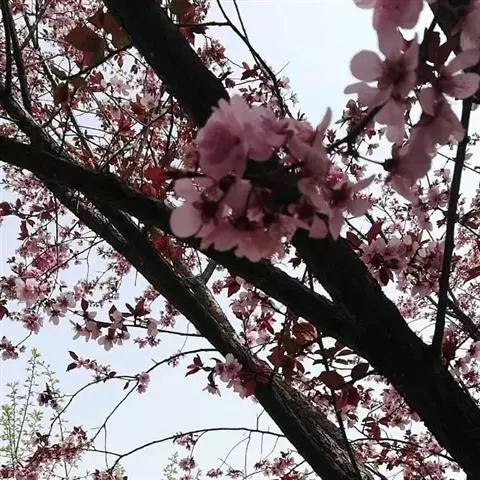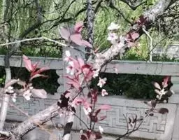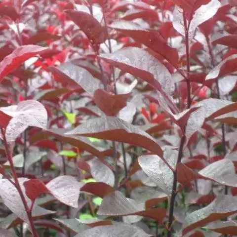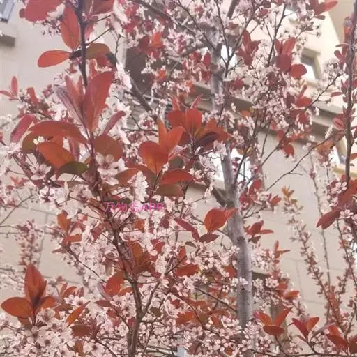 紫叶李,别名:红叶李,蔷薇科李属落叶小乔木,高可达8米,原产亚洲西南部,中国华北及其以南地区广为种植。叶常年紫红色,著名观叶树种,孤植群植皆宜,能衬托背景。尤其是紫色发亮的叶子,在绿叶丛中,像一株株永不败的花朵,在青山绿水中形成一道靓丽的风景线。