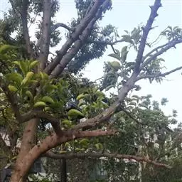 盛果树修剪:夏季采用抹芽、摘心,冬季采用疏剪、回缩相结合,逐年增大修剪量,尽可能保持梢、果生长平衡,防止大小年结果。对结果枝组,采取轮换压缩修剪春秋梢抽生较长的,留8-10片叶尽早摘心。夏梢萌发时,采用抹芽放梢,反复抹去无花蕾的嫩梢,至7月中、下旬停抹,抽放大量短壮秋梢,经过疏删调整过密和位置不当的嫩梢,即可使这批秋梢成为来年优良母枝。对树冠内部的辅养枝,在其结果后逐年疏除。下垂枝结果后,下垂部分长势更易衰弱,可逐年剪去先端下垂部分,抬高枝群位置,继续结果。对顶端较多的直立大枝,可按强树疏强枝,中庸树疏直立枝的原则进行处理,弱的疏除,强的短剪。对前期疏于整形和修剪,或树冠上部强下部弱,形成郁闭的成年树,视情况采用疏枝、锯大枝、重度回缩、开天窗和剪除骑马枝等修剪方法,使树体减少郁闭,尽快恢复树势,形成产量。