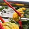 柠檬(lemons) 果实应达到要求的成熟度后才能采收。一般要求柠檬果实横径不小于50毫米,果色由深绿转为浅绿色,甚至略呈淡绿色时才能采收。春花果在10月下旬至11月中旬采收,夏花果在12月下旬至次年1月上旬采收,秋花果则要在次年6-7月份采收。采果一律采用复剪法,第一剪将果实及连带部分需剪除的果枝一并剪下,第二剪齐萼片剪去果梗,把果蒂剪平。采果时应自上而下,从外至内顺序进行。在高处或远处的果实,不要攀枝拉果,可用果梯辅助采果,以免拉伤果蒂。果实轻轻放入果篓,装九成满,即换空篓。从采果篓转入果箱(箩筐)中,也必须轻拿轻放。在运输途中,要轻载。入库前,要进行初选,伤果、落地果、病虫果必须分开放置。果实采收后不要随地堆放,不要在露天过夜。