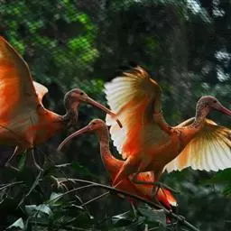 粉红琵鹭(学名:Platalea ajaja):体高87厘米,翼展127厘米,体重1300克,寿命10年。是一种大型涉禽。脚很长,喙长而呈竹片状。成鸟头部光秃及呈绿色,颈部、背部及胸部呈白色,其他的都呈深粉红色。喙呈灰色。雄鸟和雌鸟相似。飞行时的头部向前伸。在丛林或树上筑巢。每次产2-5卵,卵呈白色,有褐色斑纹。