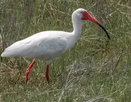 美洲白鹮:是一种大型涉禽。体长56-58厘米,体重750-1050克。头和颈裸出,喙很长,向下弯曲。…