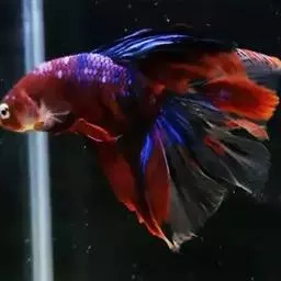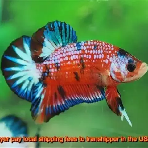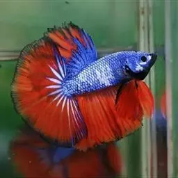 杂合子蓝尾(Heterozygote Blue Tail):俗称“Bb蓝”,子代会分离出杂合子蓝尾(约50%)、蓝化体蓝尾(约25%)、红尾(约25%)三种性状,一般来看杂合子蓝颜色较浅,但要想确知,必须通过测交来确定。致色原因是蓝反射细胞+黑色素细胞
