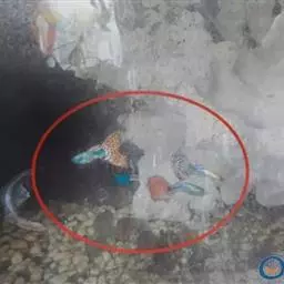 亲鱼会连续这样生产约11次,11次里头3次产仔很少,随着体型的增大会越来越多。