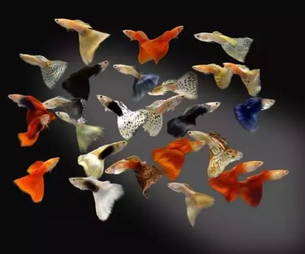 孔雀鱼身体后部侧扁,尾巴形状多样而又艳丽漂亮,根据其尾鳍的形状,可分为上剑尾、下剑尾、双剑尾、琴尾、针尾、圆尾、旗尾、扇尾、三角尾、尖尾、长尾、齿尾、大尾等品种。各品种之间相互杂交又产生了纷繁多样的后代,所以孔雀鱼尽管品种繁多,但很难找到两尾完全相同的孔雀鱼来,这也正是孔雀鱼的魅力所在。