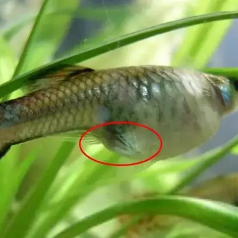 肛门凸出。临产时会发现孔雀鱼肛门明显外凸。