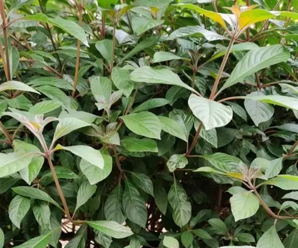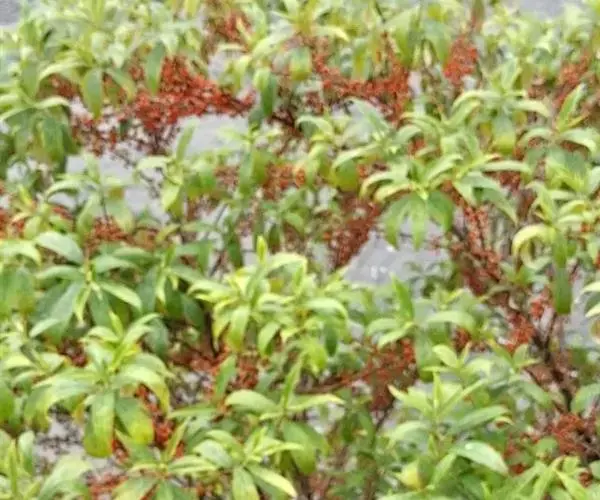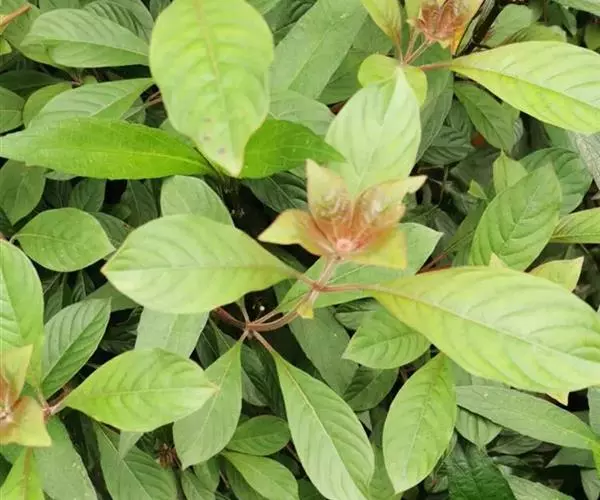常绿灌木或小乔木,高可达7m;枝开展下垂。叶3~4枚轮生,倒卵状椭圆形至卵形,长5~8(12)cm,侧脉弧形,基部楔形,全缘,两面有毛。花冠红色或橙红色,管状,长达1.8cm,端5裂;成顶生红色聚伞花序。浆果卵球形,长约6mm,暗红或紫色。