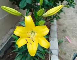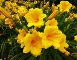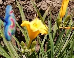 金娃娃萱草:是萱草的人工栽培的园艺品种。地下具根状茎和肉质肥大的纺锤状块根。叶基生,条形,排成两列,…