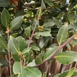 月桂(Laurus nobilis),是樟科月桂属的一种,为亚热带树种 。常绿小乔木或灌木,树冠卵圆形,分枝较低,小枝绿色,全体有香气。叶互生,革质,广披针形,边缘波状,有醇香。单性花,雌雄异株,伞形花序簇生叶腋间,小花淡黄色。核果椭圆状球形,熟时呈紫褐色。花期3-5月,果熟期6-9月。