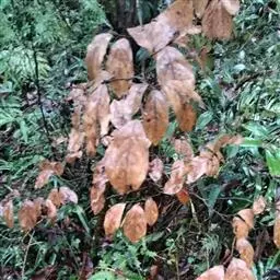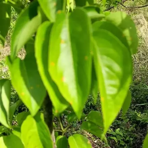 褐斑病,发病初期,叶片上出现褪绿小黄斑点,逐渐扩展成近圆形病斑,直径2至10mm,或因病斑扩展受叶脉限制成为不规则病斑。病斑黄褐色至灰褐色,病斑外围有一黄色晕圈。褐斑病一般发生在4至10月份,老叶比嫩叶易感病。病原菌以菌丝在病落叶上越冬,次年春季产生分生孢子进行初侵染,分生孢子由气流和雨滴传播。