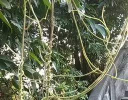 无根藤寄生缠绕草本植物,借盘状吸根攀附于寄主植物上。茎线形,稍木质,叶退化为微小的鳞片。…