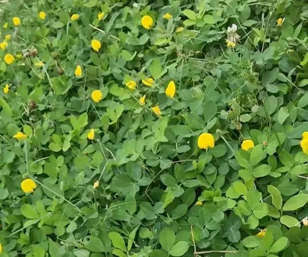 蔓花生(Arachis duranensis),蝶形花科蔓花生属多年生宿根草本植物,原产于亚洲热带及南美洲,复叶互生,小叶两对呈倒卵形。茎为蔓性,株高10—15厘米左右,匍匐生长。花为腋生,蝶形,金黄色,花期春季至秋季。