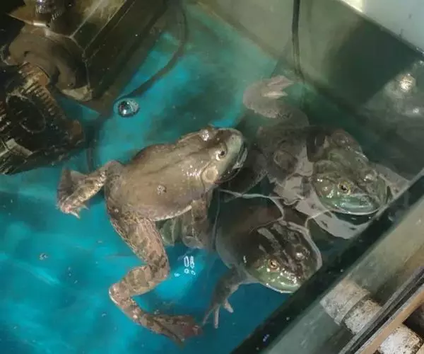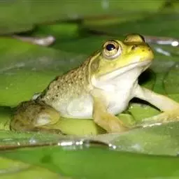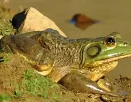 牛蛙 原产于北美,因其鸣叫声宏亮酷似牛叫而得名。1959年牛蛙从古巴引入我国,九十年代左右开始在我国被大范围推广养殖。近年来,牛蛙已成为我国水产养殖重要的名特水产品之一。