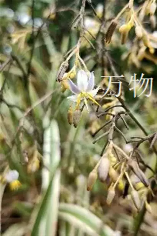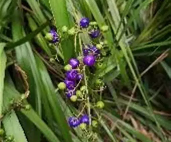 山菅,学名:Dianella ensifolia (L.) DC.,别称山菅兰、山猫儿、交剪草、山兰花、金交剪、山交剪、桔梗兰、老鼠怕及老鼠砒等,为百合科山菅属植物,为多年生草本植物。花期3-7月。生长于平地至中海拔山坡或林下。有毒植物。根状茎磨干粉,调醋外敷,可治痈疮脓肿、癣、淋巴结炎等。