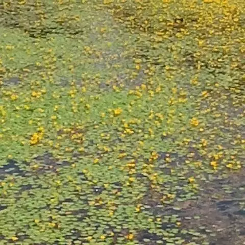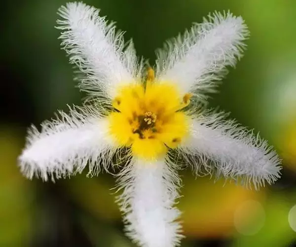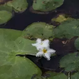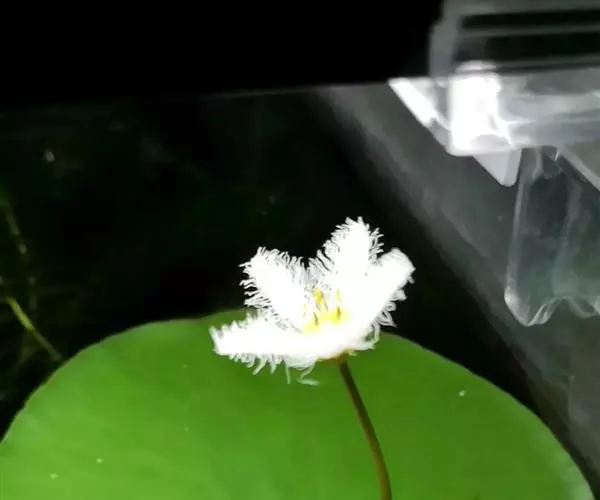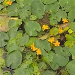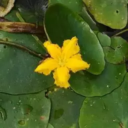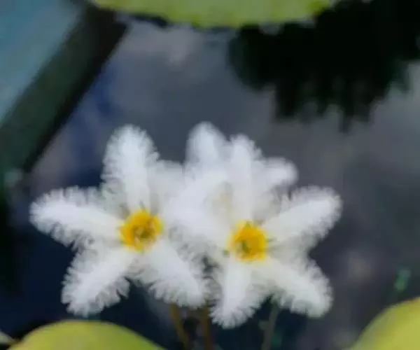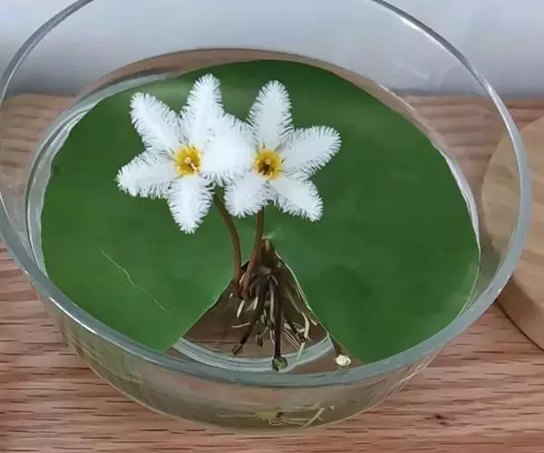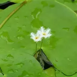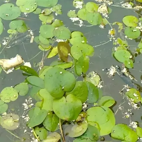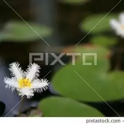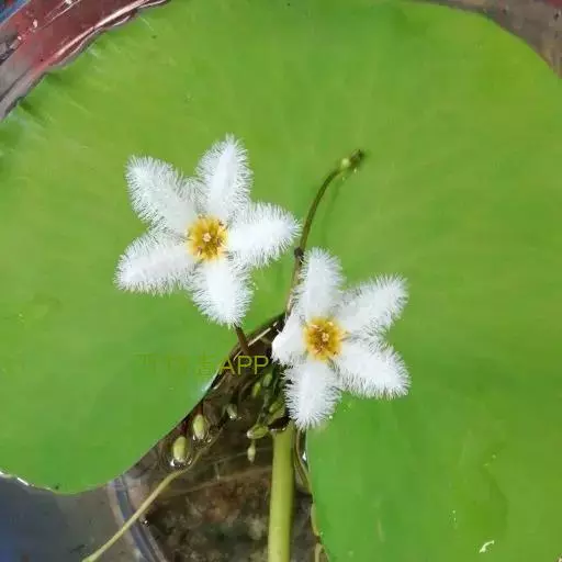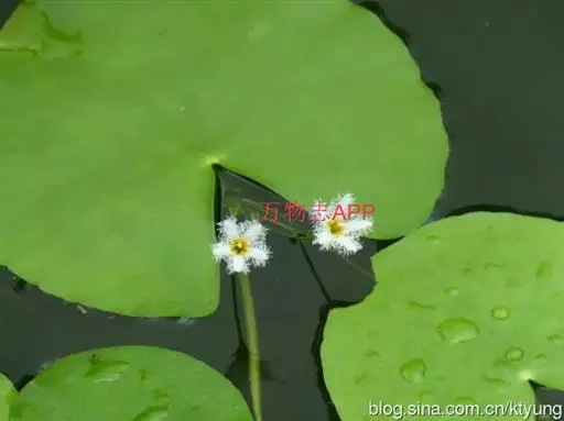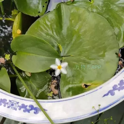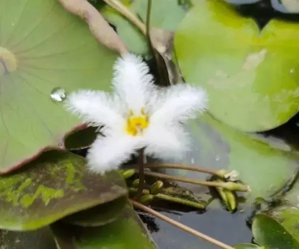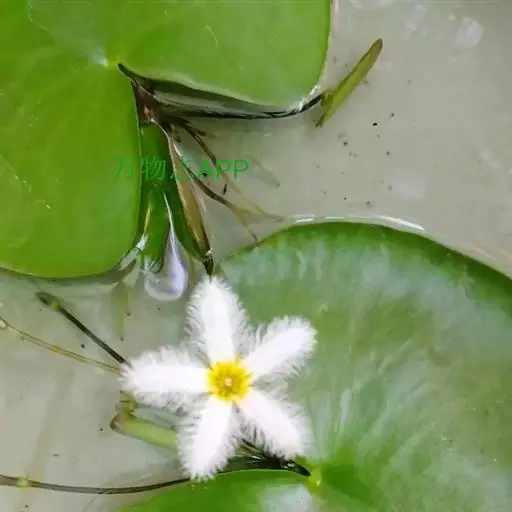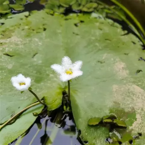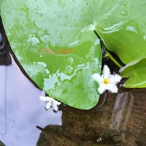 金银莲花(学名:Nymphoides indica (L.) O. Kuntze):多年生水生草本。茎圆柱形,不分枝,形似叶柄,顶生单叶。叶飘浮,近革质,宽卵圆形或近圆形,下面密生腺体,基部心形,全缘,具不甚明显的掌状叶脉,叶柄短,圆柱形,花多数,簇生节上,花梗细弱,圆柱形,不等长,分裂至近基部,裂片长椭圆形至披针形,先端钝,脉不明显;花冠白色,基部黄色,分裂至近基部,冠筒短,裂片卵状椭圆形,先端钝,腹面密生流苏状长柔毛。蒴果椭圆形,花果期8-10月。