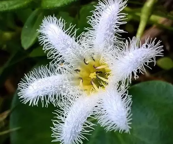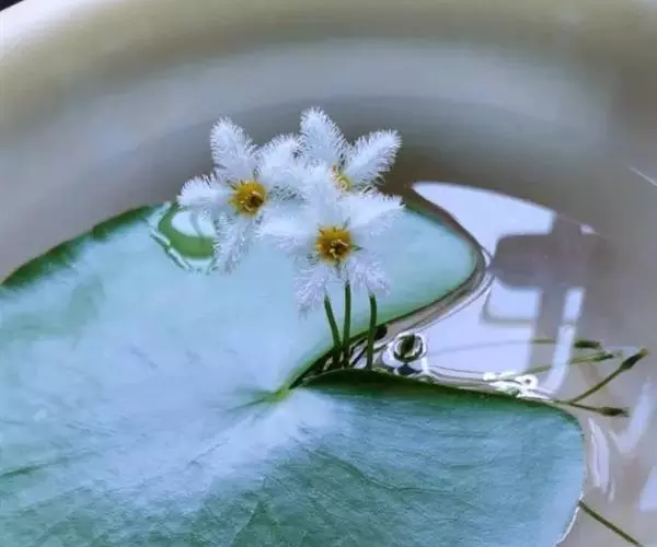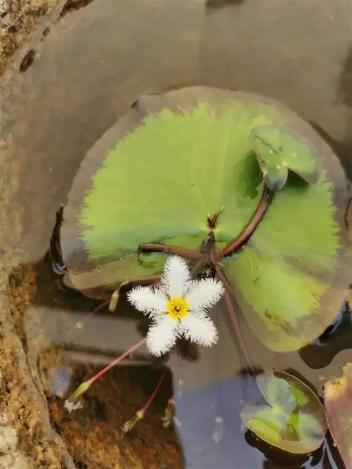 金银莲花又名印度莕菜,是公园常见的水生花卉,叶似睡莲,椭圆形至心形,革质光滑,青绿色,漂浮于水面;常在夏天开白色的小花,花齿绒毛状,幼小娇柔,开在碧波绿叶上,朵朵小花星星点点,能洒满整个水面,微风拂过,随风荡漾,摇曳生姿,带给人一种花欲静而风不止,景有尽而意无穷的美感。在风景区或公园湖面成片种植金银莲花,夏秋时节,那白色的小花,星罗棋布,银光闪闪,极目远眺,田园风光,秀色可餐。