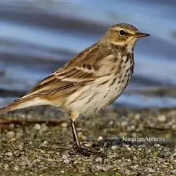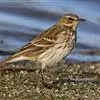黄腹鹨(学名:Anthus rubescens):是雀形目鹡鸰科的鸟类,属小型鸣禽,体长约15厘米。似树鹨但上体褐色浓重,上喙较细长,先端具缺刻;翅尖长,内侧飞羽(三级飞羽)极长,几与翅尖平齐;尾细长,外侧尾羽具白,野外停栖时,常做有规律的上、下摆动,腿细长,后趾具长爪,适于在地面行走。主要栖息于山地、林缘、灌木丛、草原、河谷地带。冬季喜沿溪流的湿润多草地区及稻田活动。