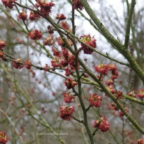 头状花序单生或数枝排成总状花序,有花8-12朵,花序柄长1-2厘米,被柔毛;花两性或单性;萼齿不明显,常为鳞片状;花瓣长2-3毫米,或缺花瓣;雄蕊长约5毫米,花丝纤细,无毛;子房半下位,被黄褐色柔毛,花柱长3-4毫米,直立。头状果序直径约2厘米,有蒴果8-12个,果序柄长1.5-2厘米;蒴果椭圆形,长7-9毫米,宽5-6毫米,上半部2片裂开,果皮表面平滑,不具小瘤状突起;种子具窄翅,位于胎座基部的数个种子正常发育。