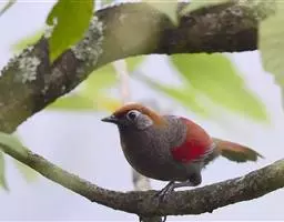 黑额山噪鹛是噪眉科、噪鹛属中型鸟类,体长27-31厘米。上体橄榄褐色,尾上尾下覆羽棕红色,…