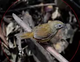 红翅薮鹛是噪眉科、薮鹛属中型鸟类,体长21-24厘米。头顶灰褐色,头侧和颈侧赤红色,上体橄榄褐色,…