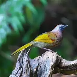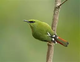 习性:一般都单独活动有时也见3至5只小群穿梭於枝桠间或在树枝上跳跃活动。有时结小群于开花结果的树上取食。性活泼而不惧生。