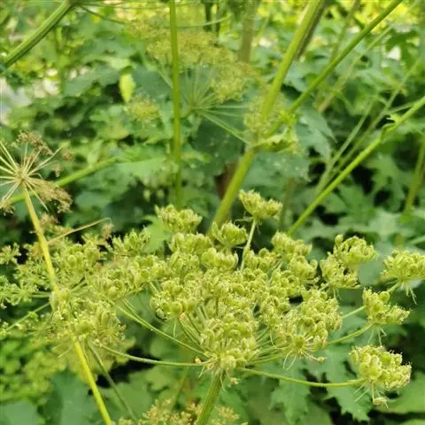 明日叶,伞形科当归属多年生大草本。茎叶内含黄色液汁,茎直立,多分枝;基生叶丛生,具长柄,基部扩大抱茎,…