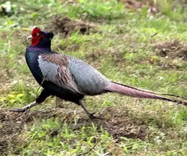 黑长尾雉大型鸡类,体长53~88厘米。雄较雌大。雄鸟通体紫蓝色,脸鲜红色,翅上有一条显著的白色翅斑…