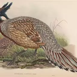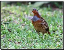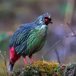 血雉雉科血雉属鸟类,别名血鸡、松花鸡,血雉的雄鸟大覆羽、尾下覆羽、尾上覆羽、脚、头侧、腊膜为红色,…
